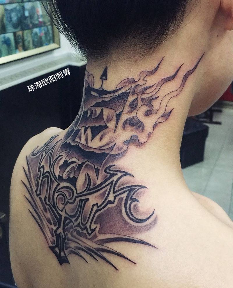 黑灰满背纹身图案