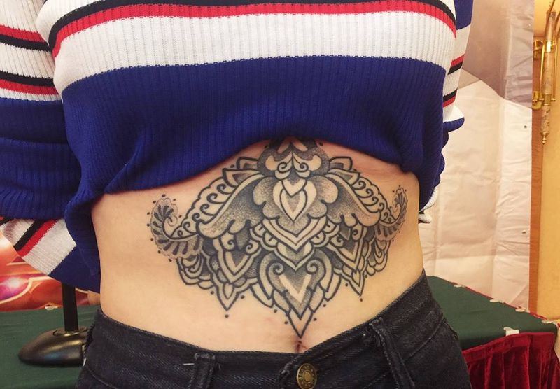 • T关于私处得爱!纹身图片_成品腹部清新字符图腾纹身图案