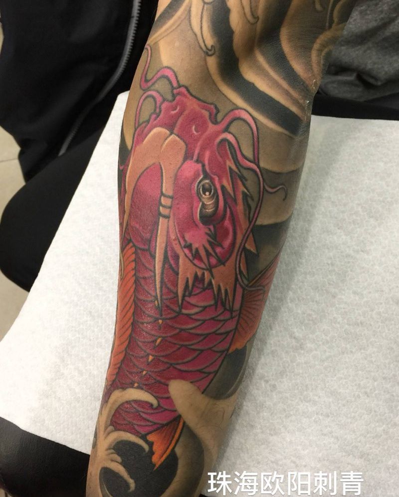• T网红王老大花腿龙纹身图片_腿部新传统纹身图案