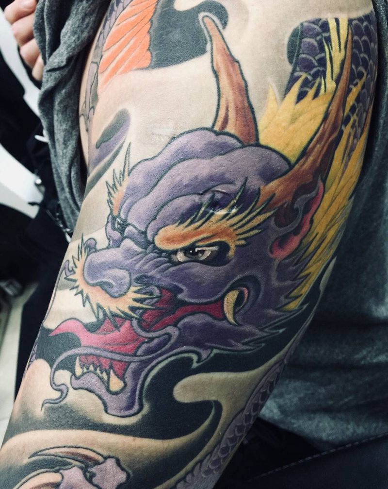 • T网红王老大花腿龙纹身图片_腿部新传统纹身图案
