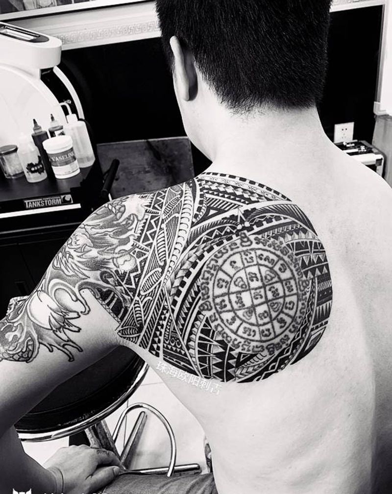 • 纹身吧推荐的披肩图腾半胛纹身图案作品展示