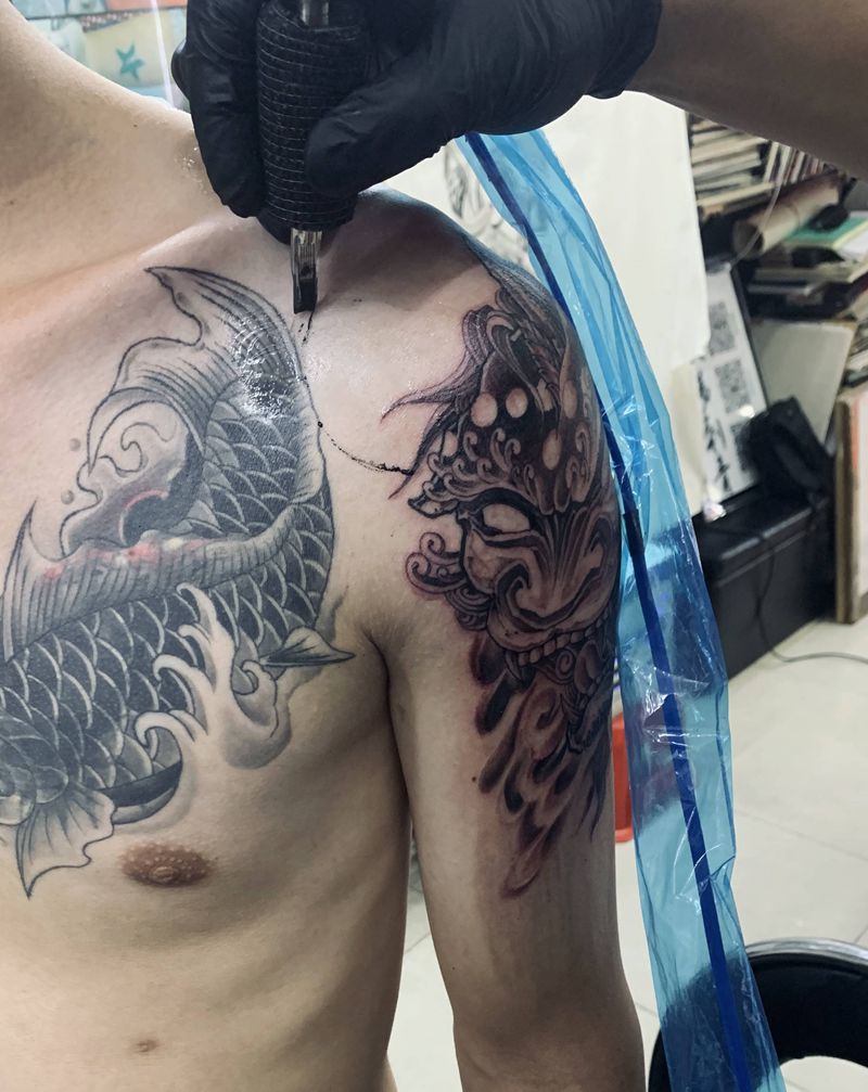 • 纹身吧推荐的披肩图腾半胛纹身图案作品展示