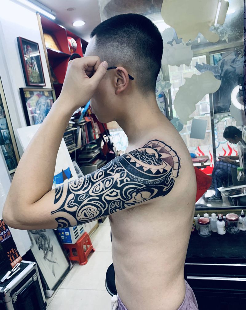 • 纹身吧推荐的披肩图腾半胛纹身图案作品展示