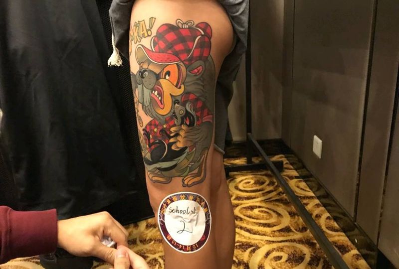 华南纹身艺术展二等奖纹身图片_腿部New School纹身图案
