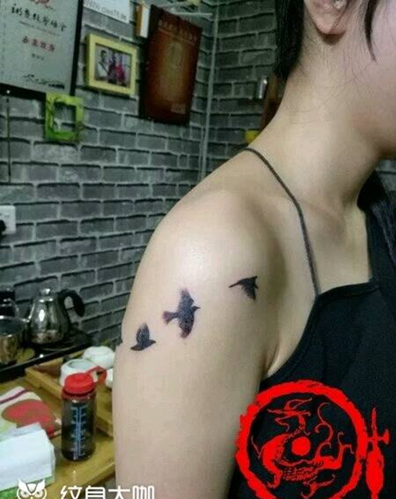 泼墨玫瑰+小鸟纹身图片_肩部背部清新动物植物成品纹身图案