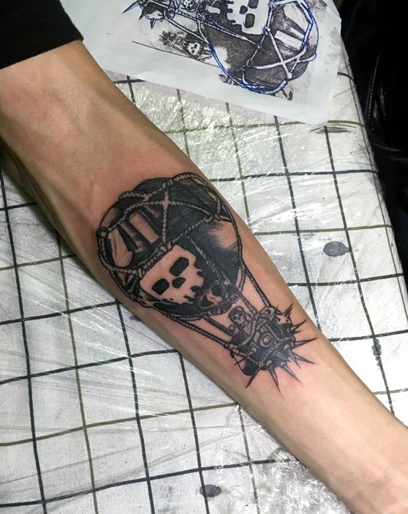 当前位置: 首页 >广东省汕头市纹身店-赤龙纹身工作室纹身图案>骷髅热气球纹身图片