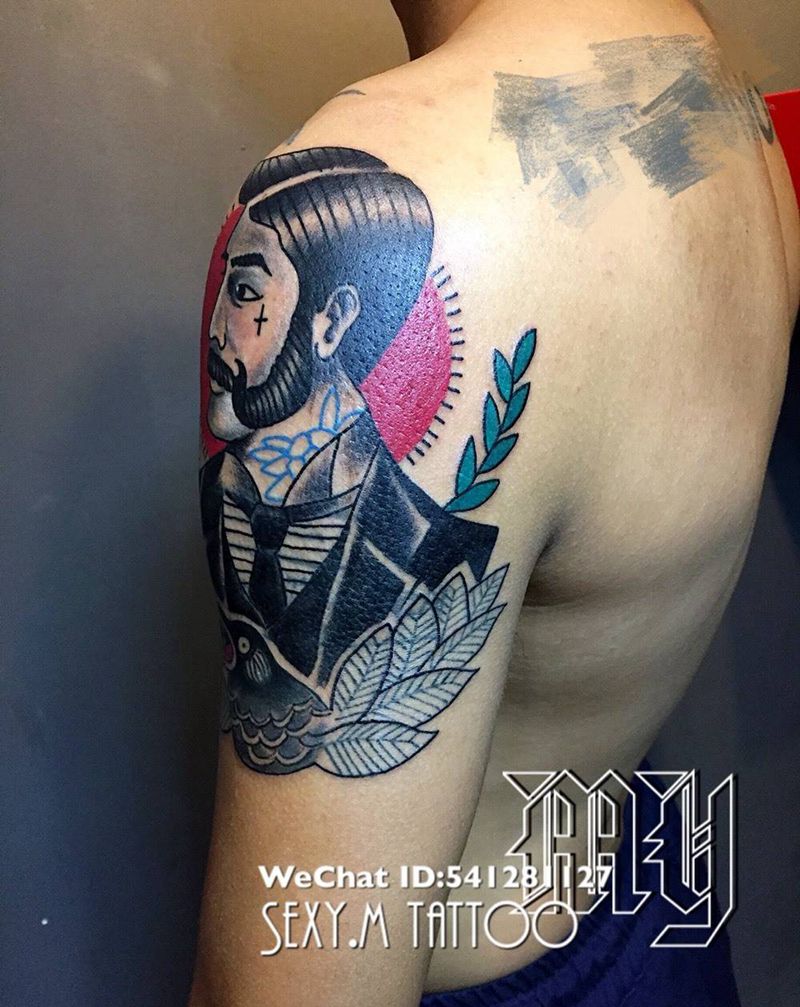 • 纹身吧推荐的披肩图腾半胛纹身图案作品展示
