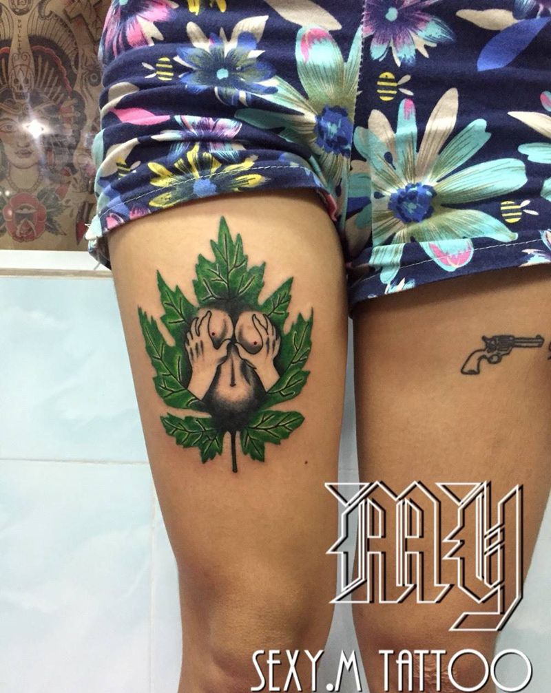 当前位置: 首页 >广东省珠海市纹身店-MY.sexy.m Tattoo纹身图案>重口味綠葉纹身图片