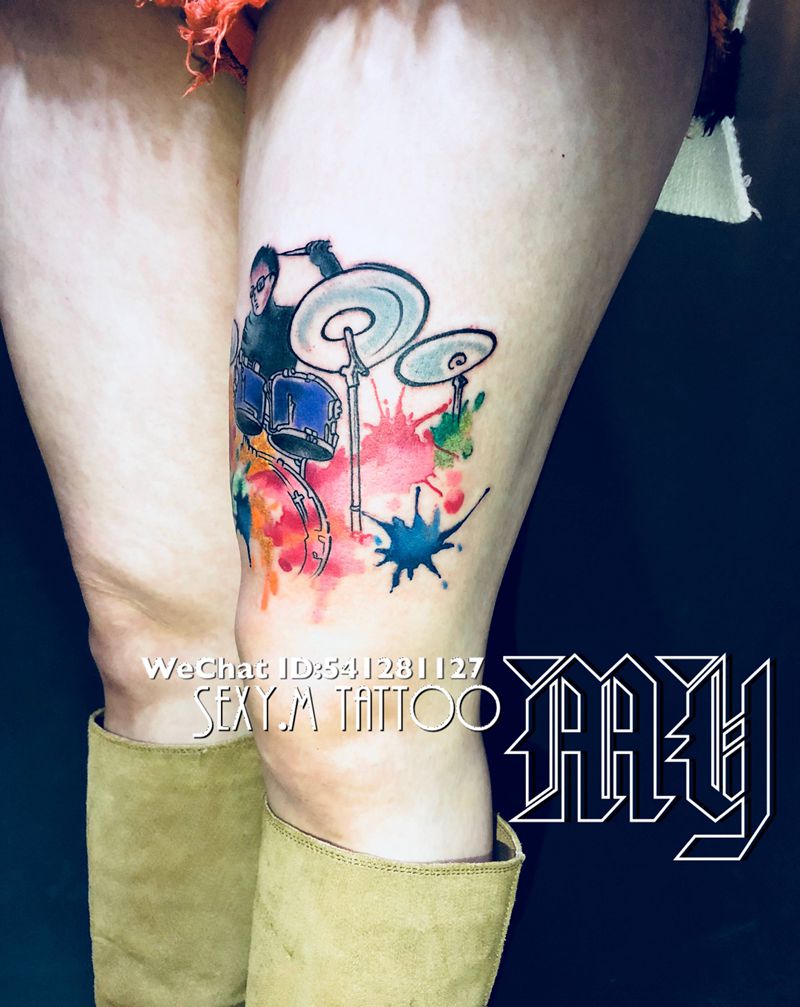 原创水彩风格纹身图片_成品腿部欧美清新纹身图案