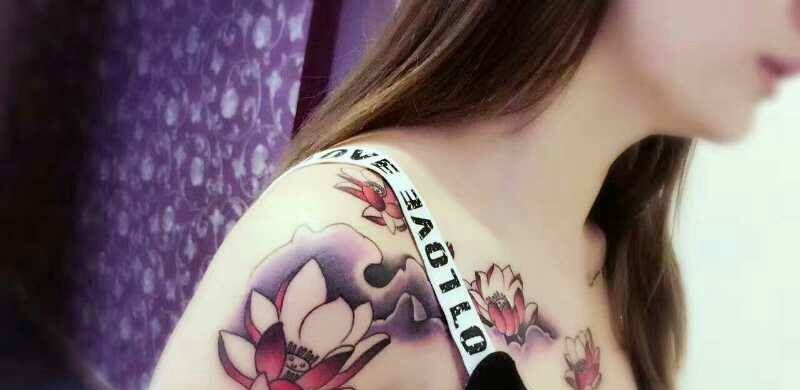 当前位置: 首页 >广东省珠海市纹身店-九纹龙纹身图案>荷花纹身图片_成品肩部手臂传统清新植物纹身图案