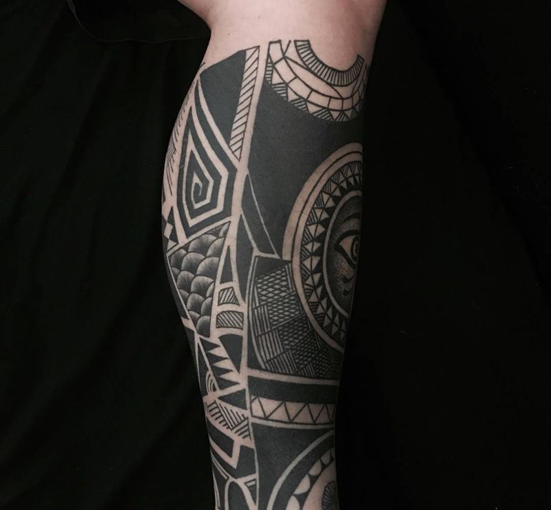 当前位置: 首页 >广东省珠海市纹身店-九纹龙纹身图案>包小腿部落图腾纹身图片_成品手稿原创图腾传统腿部纹身图案