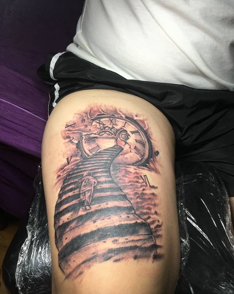 • T网红王老大花腿龙纹身图片_腿部新传统纹身图案