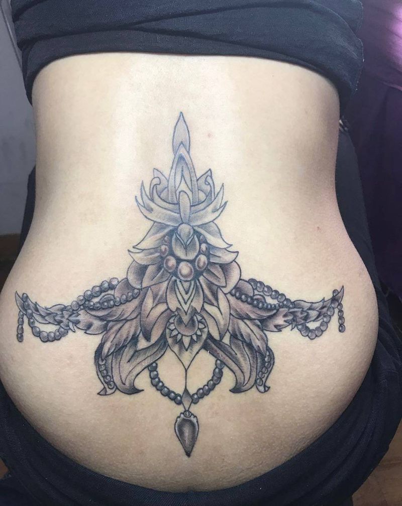 • 时尚性感的腹部莲花纹身图案