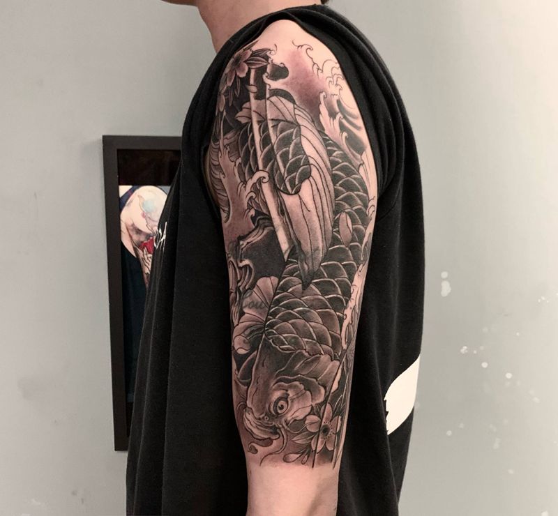 鲤鱼遮盖纹身图片_手臂纹身图案