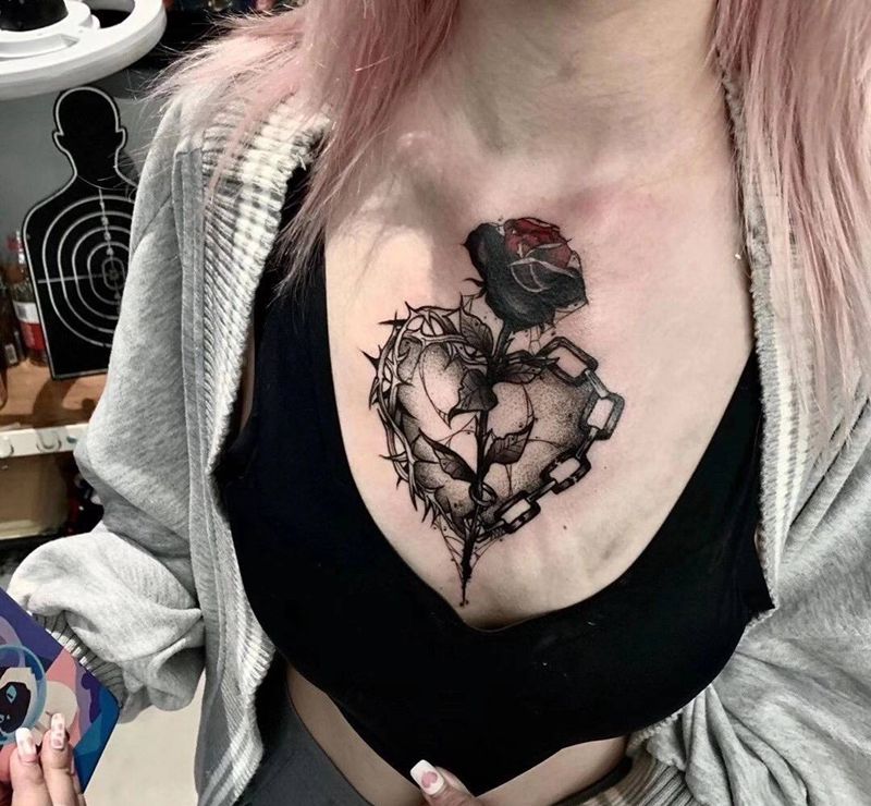 • 女性大花胸纹身_43张霸气漂亮的女性大花胸纹身图案作品