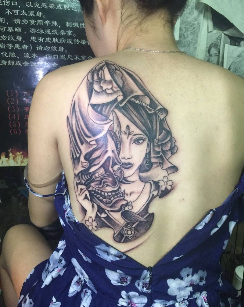 当前位置: 首页 >广东省汕头市纹身店-鬼墨刺青Tattoo纹身图案>艺妓纹身图片