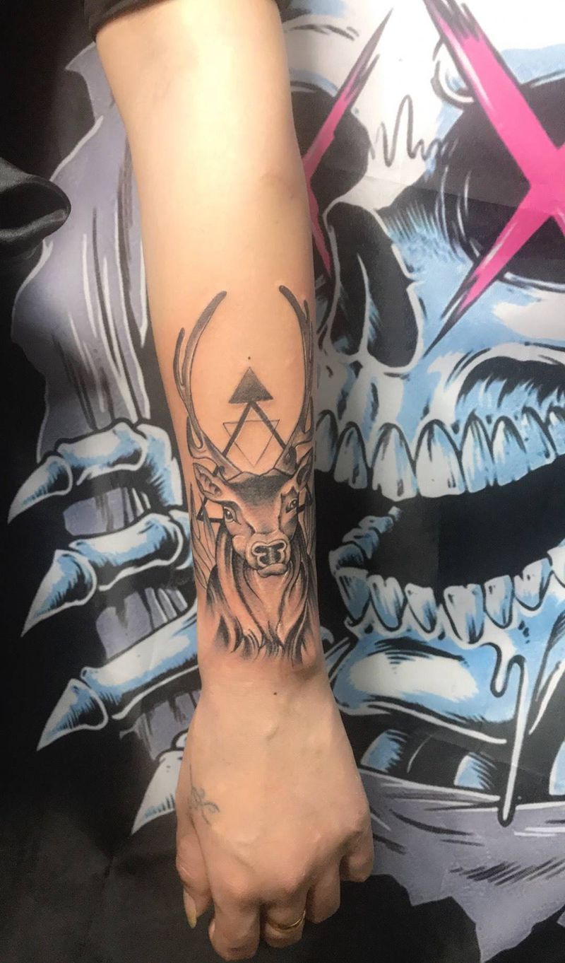 鹿 遮盖前任名字纹身图片