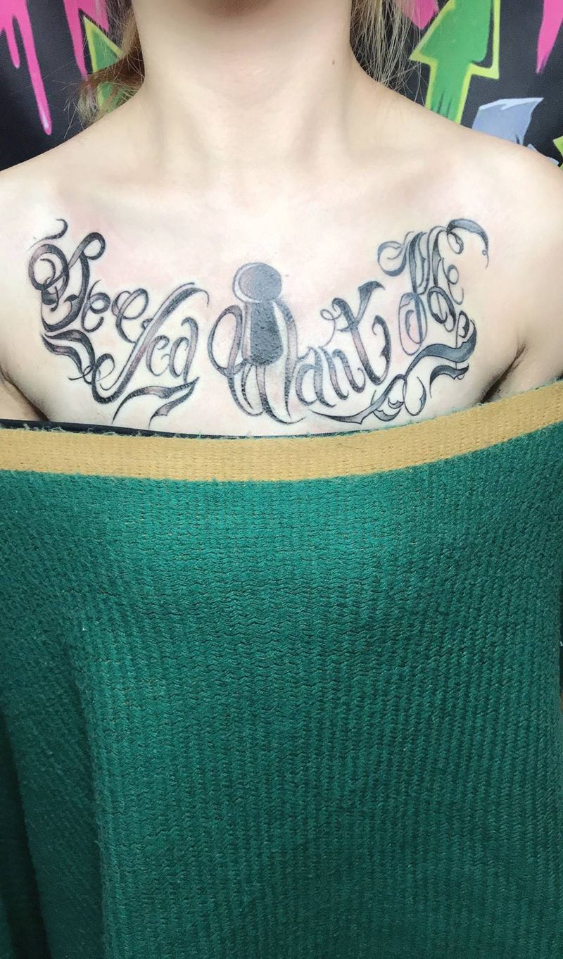 当前位置: 首页 >广东省汕头市纹身店-鬼墨刺青Tattoo纹身图案>胸部花体英文 无痛纹身图片