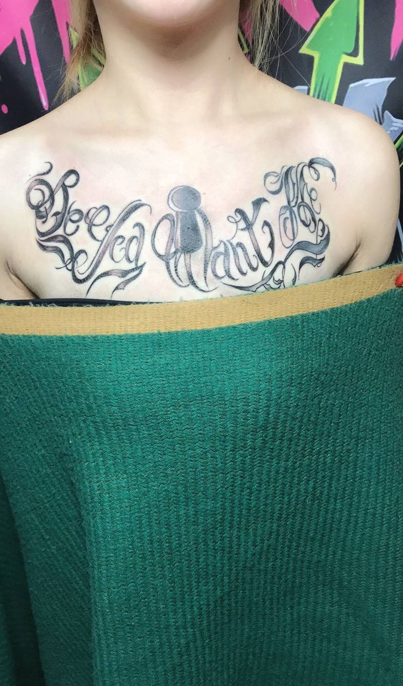 当前位置: 首页 >广东省汕头市纹身店-鬼墨刺青Tattoo纹身图案>胸部花体英文 无痛纹身图片