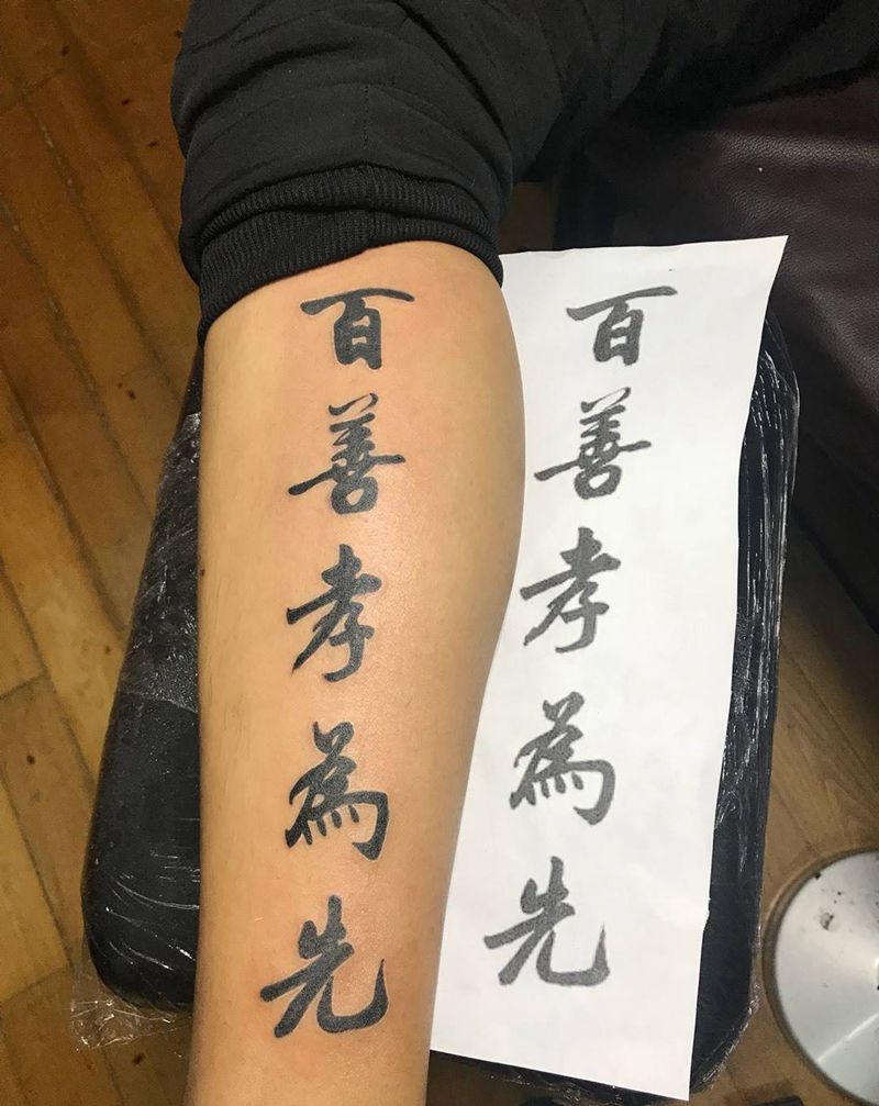 当前位置: 首页 >广东省汕头市纹身店-鬼墨刺青Tattoo纹身图案>百善孝为先纹身图片