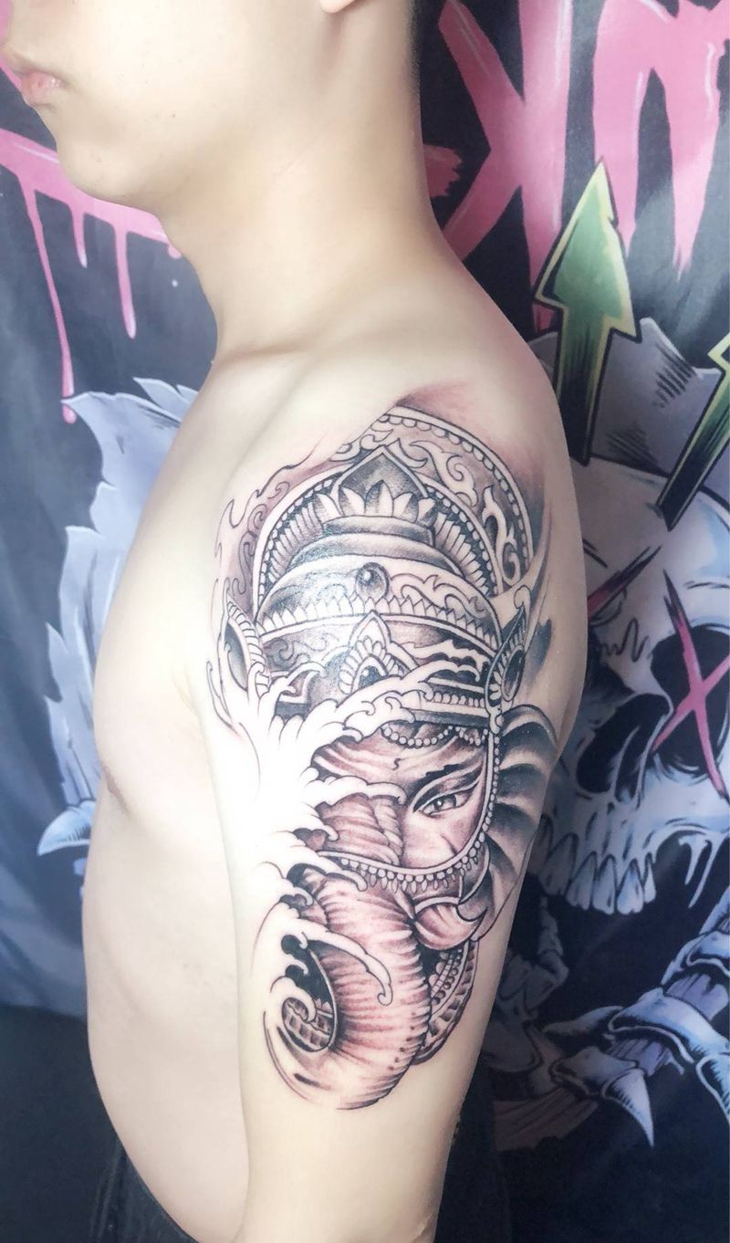 当前位置: 首页 >广东省汕头市纹身店-鬼墨刺青Tattoo纹身图案>象神纹身图片