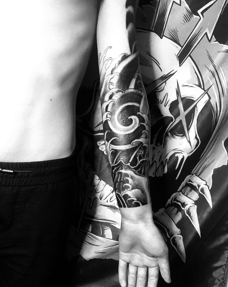 当前位置: 首页 >广东省汕头市纹身店-鬼墨刺青Tattoo纹身图案>原创浪花臂纹身图片