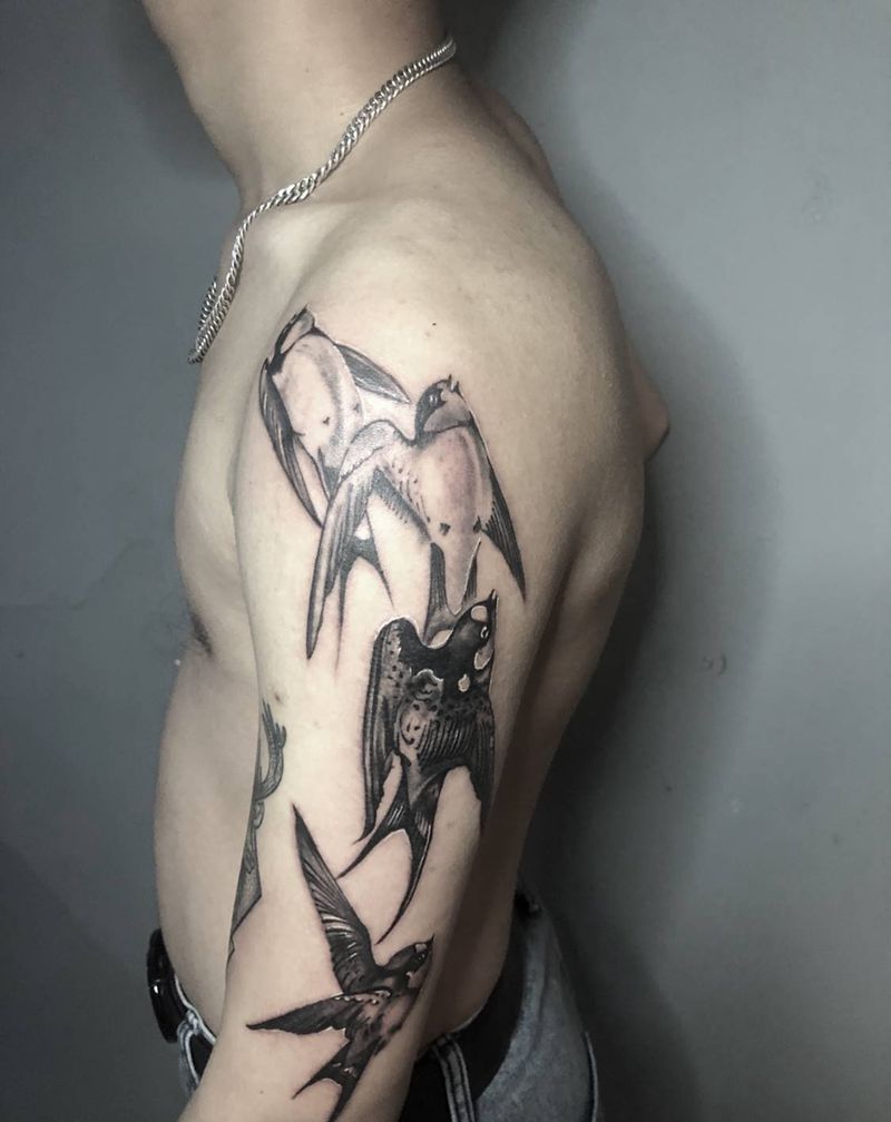 当前位置: 首页 >广东省汕头市纹身店-鬼墨刺青Tattoo纹身图案>燕子纹身图片_手臂纹身图案