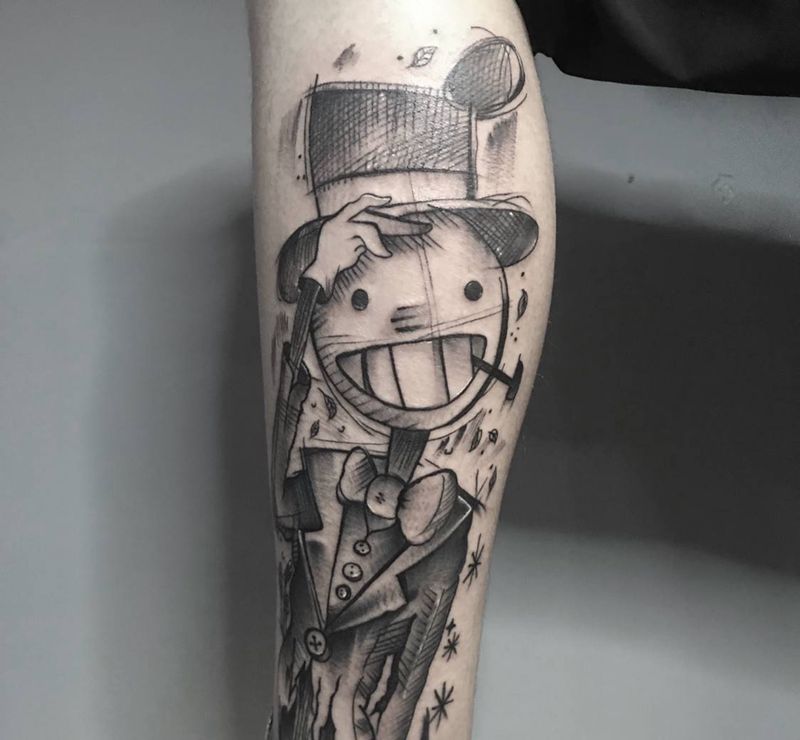 当前位置: 首页 >广东省汕头市纹身店-鬼墨刺青Tattoo纹身图案>稻草人纹身图片_腿部纹身图案