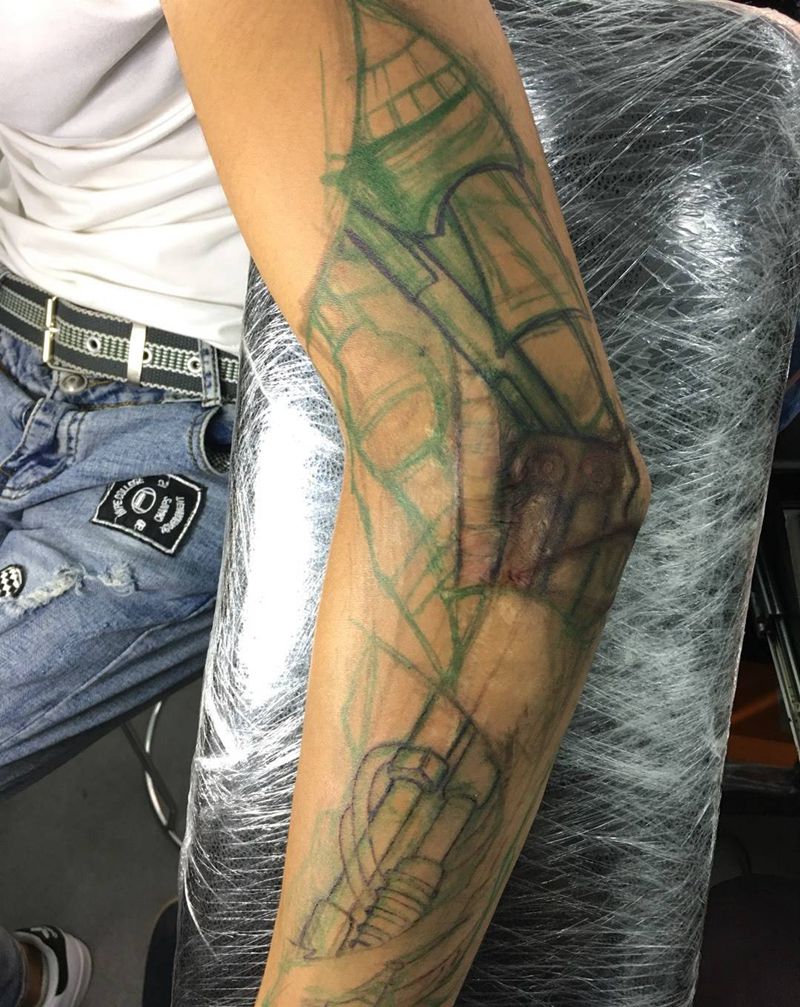 当前位置: 首页 >广东省珠海市纹身店-玩野刺青 INKPLAY纹身图案>现场设计的机械臂遮盖。末完成纹身图片