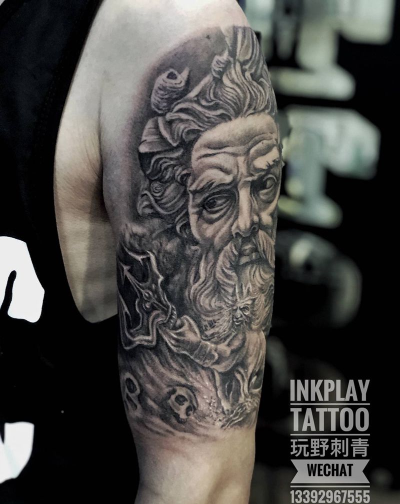 当前位置: 首页 >广东省珠海市纹身店-玩野刺青 INKPLAY纹身图案>海神波塞冬 一次完成纹身图片_手臂欧美写实纹身图案