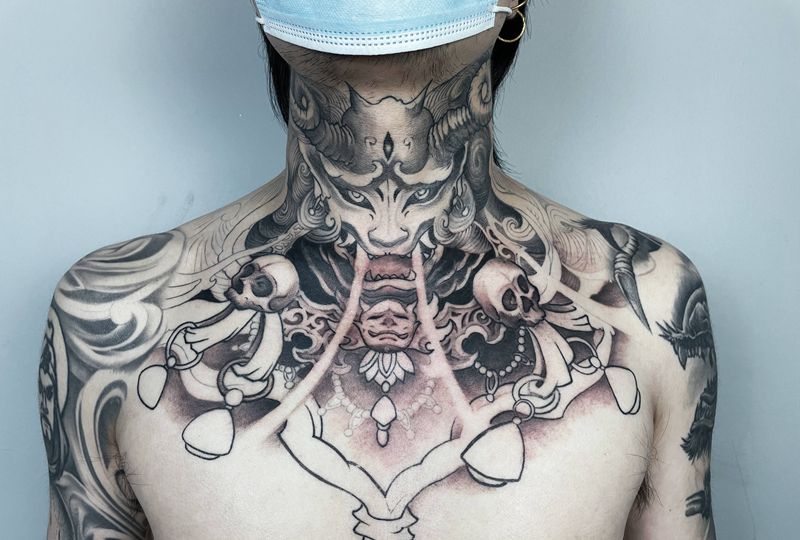当前位置: 首页 >广东省汕头市纹身店-鬼手纹身纹身图案>脖子花胸纹身图片_新传统纹身图案