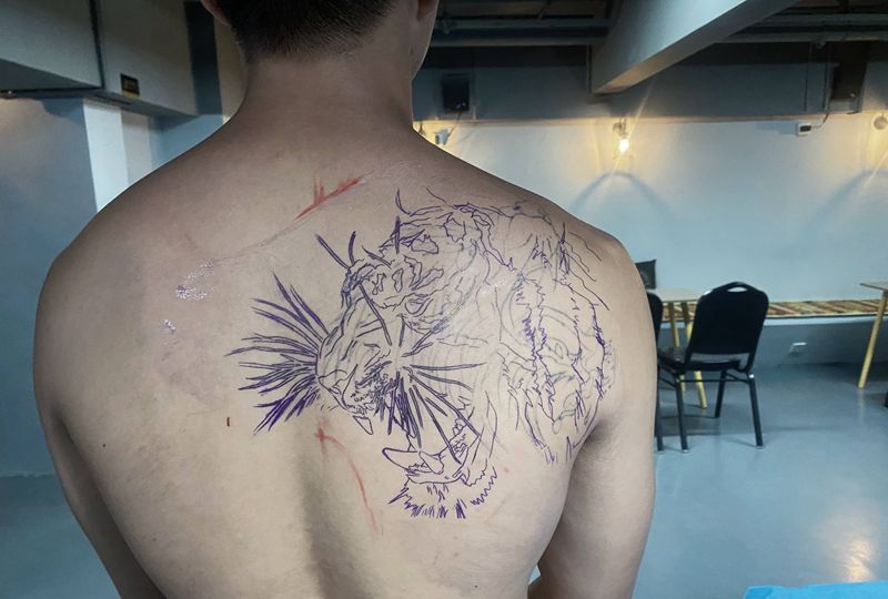 • 黑灰满背纹身图案