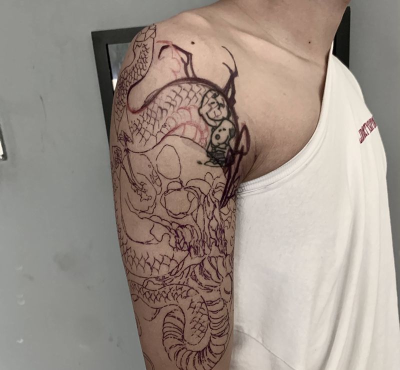 来源: 纹身师:皇叔 纹身店:鬼墨刺青Tattoo 查看相关手稿