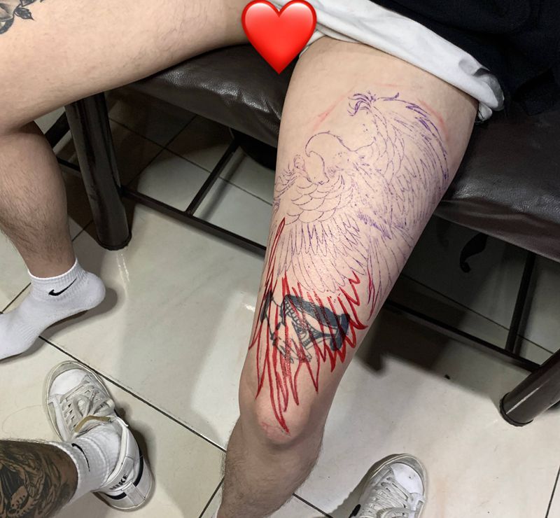 • T网红王老大花腿龙纹身图片_腿部新传统纹身图案