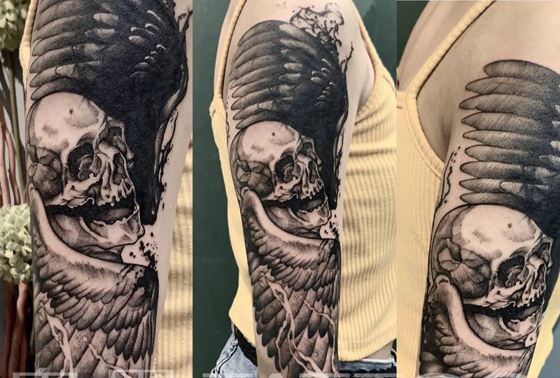 • 纹身吧推荐的披肩图腾半胛纹身图案作品展示