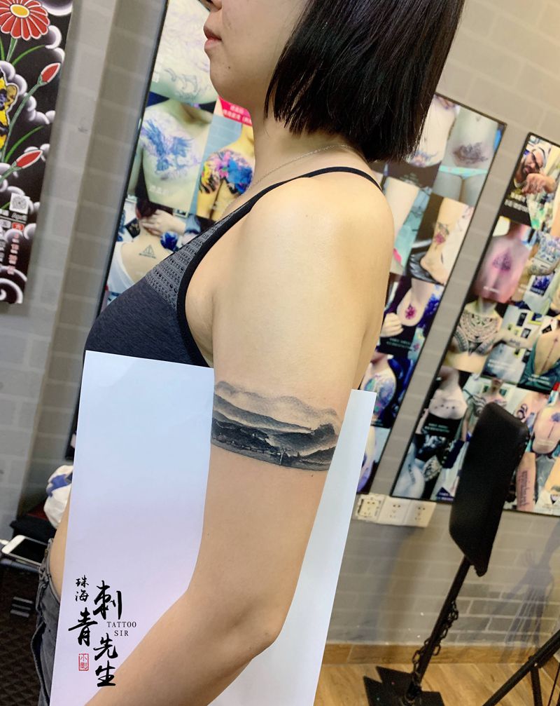 当前位置: 首页 >广东省珠海市纹身店-纹身(刺青先生)工作室纹身图案>山水画臂环纹身图片_手臂水墨纹身图案