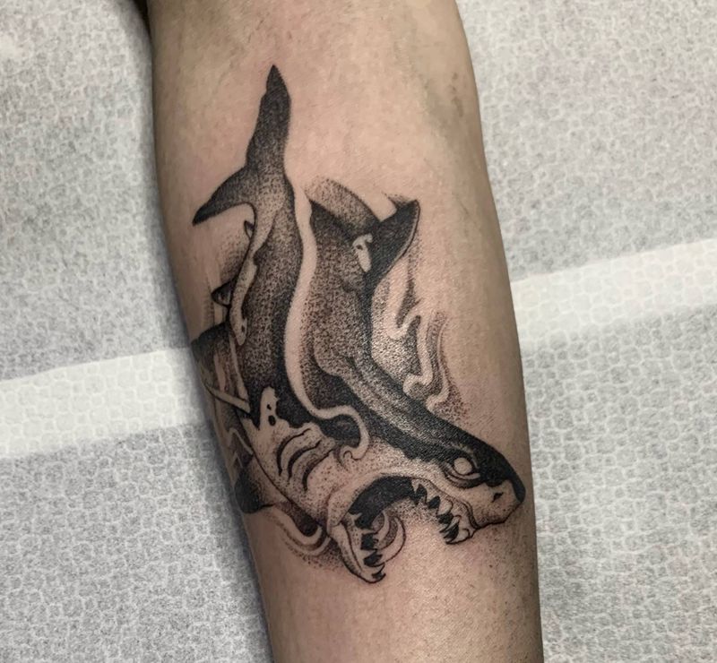 当前位置: 首页 >广东省汕头市纹身店-鬼墨刺青Tattoo纹身图案>鲨鱼纹身图片_手臂点刺纹身图案