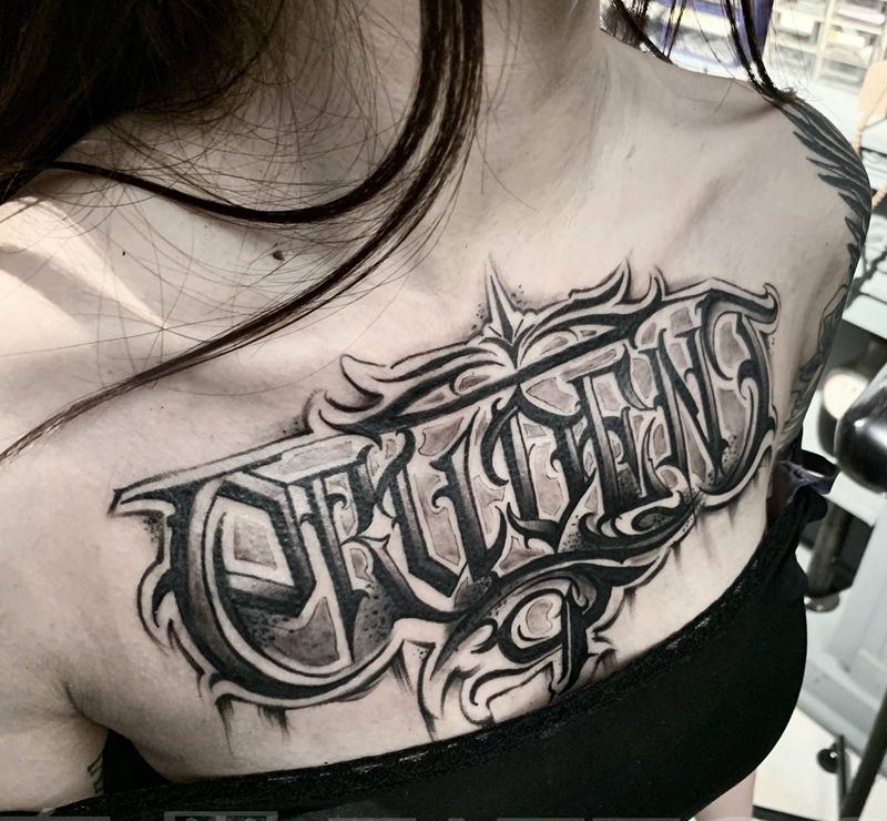 原创暗黑花体 谨慎的纹身图片_胸部纹身图案