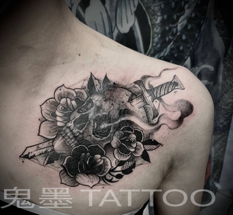 当前位置: 首页 >广东省汕头市纹身店-鬼墨刺青Tattoo纹身图案>原创暗黑系遮盖纹身图片_胸部暗黑系纹身图案