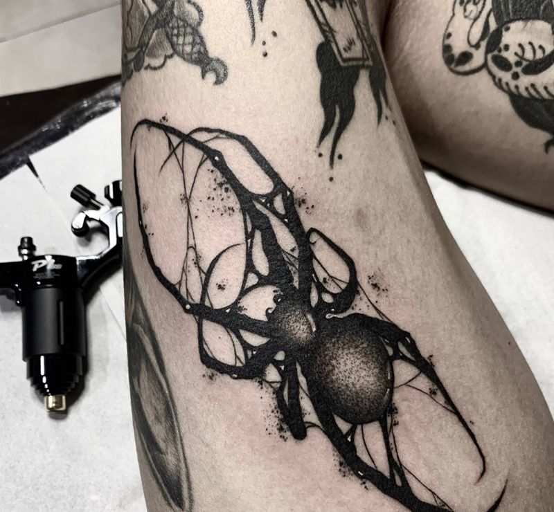 暗黑系蜘蛛纹身图片_腿部点刺暗黑系纹身图案