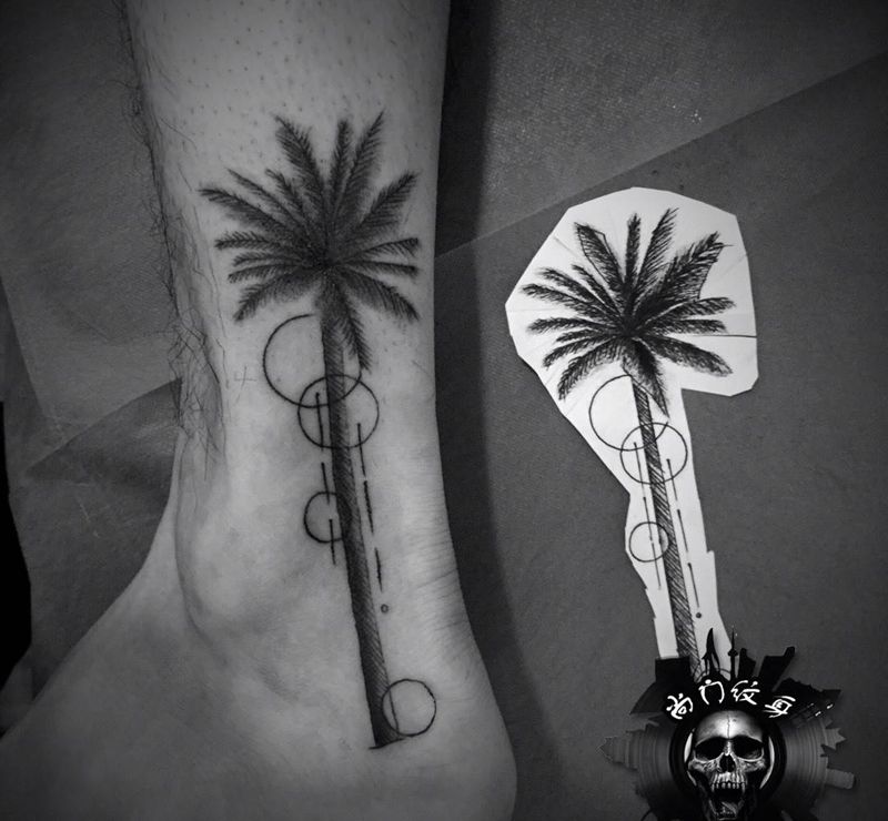 椰树纹身图片_成品脚部清新植物纹身图案
