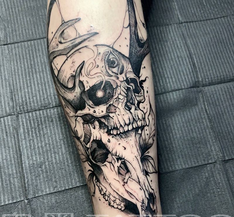 当前位置: 首页 >广东省汕头市纹身店-鬼墨刺青Tattoo纹身图案>暗黑系纹身图片_腿部脚部暗黑系纹身图案