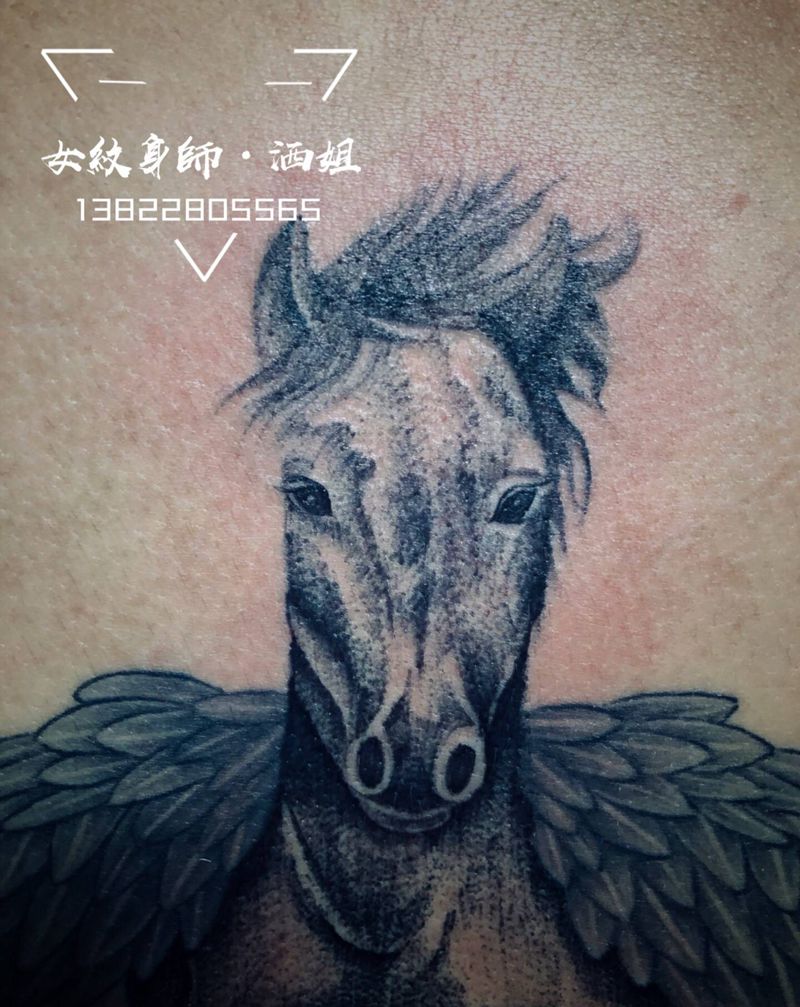 当前位置: 首页 >广东省汕头市纹身店-飒纹身图案>挥着翅膀的马纹身图片_背部点刺马动物翅膀纹身图案