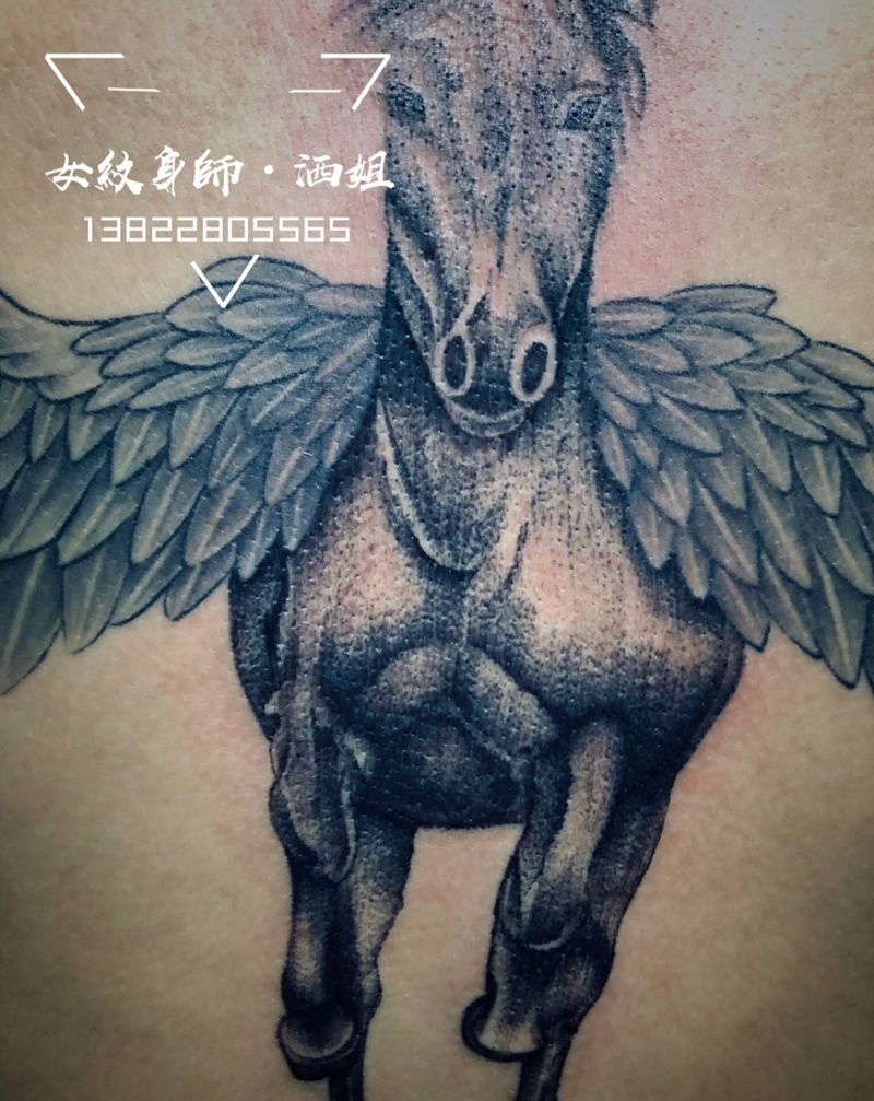当前位置: 首页 >广东省汕头市纹身店-飒纹身图案>挥着翅膀的马纹身图片_背部点刺马动物翅膀纹身图案