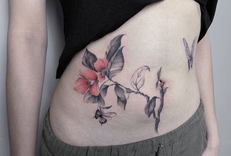 花 遮盖疤痕纹身图片_腹部纹身图案