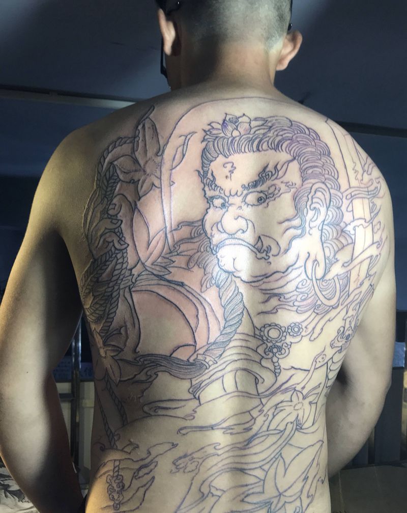 黑灰满背纹身图案