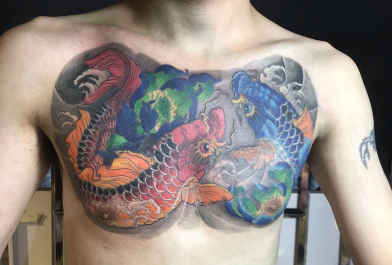 花胸鱼遮盖纹身图片_胸部纹身图案