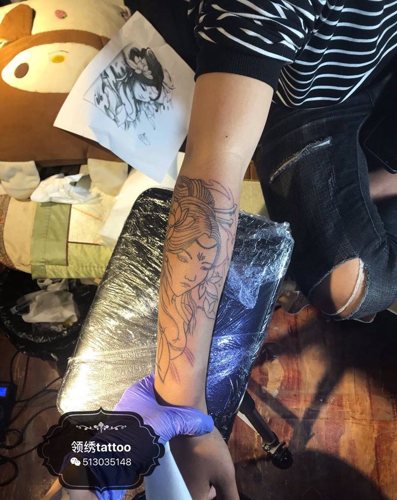 当前位置: 首页 >广东省汕头市纹身店-领绣纹身机构纹身图案>小臂艺妓纹身图片