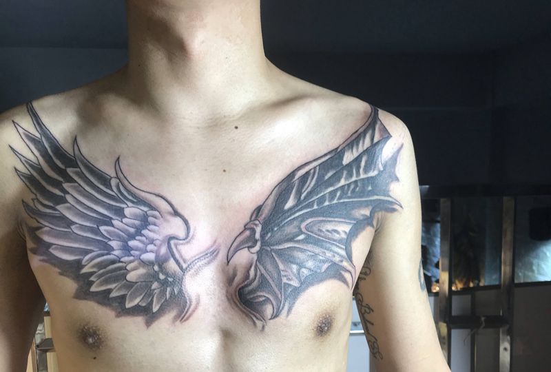 天使还是魔鬼纹身图片_胸部纹身图案