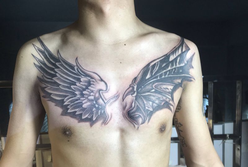 当前位置: 首页 >广东省汕头市纹身店-领绣纹身机构纹身图案>天使还是魔鬼纹身图片_胸部纹身图案